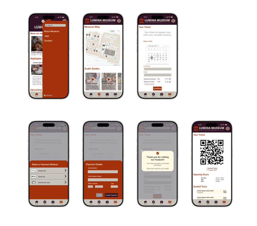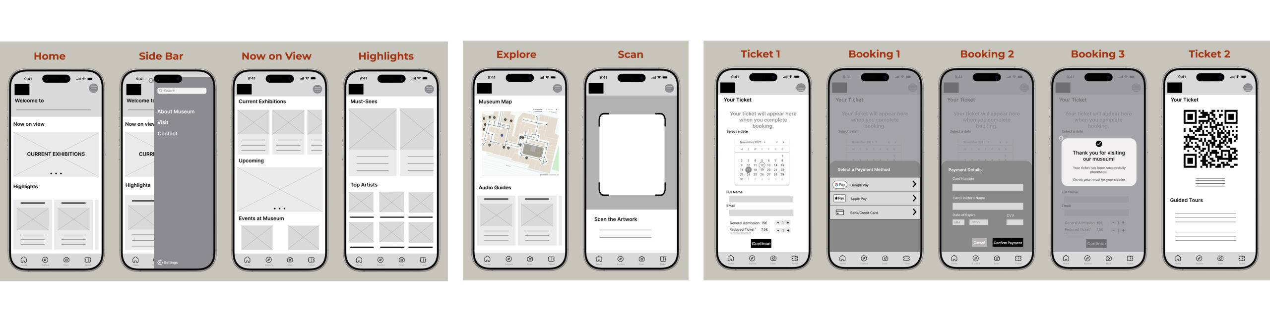 I conducted basic user research through interviews with potential users, such as students, art lovers, and occasional museum-goers. I assumed people would want features like accounts and sharing options, but I learned they preferred a simple app that’s easy to navigate without signing in. Many users wanted quick access to museum highlights, the ability to book tickets easily, and an interactive feature like scanning artwork. This research helped me focus on creating a user-friendly app that’s all about exploring and enjoying the museum experience.